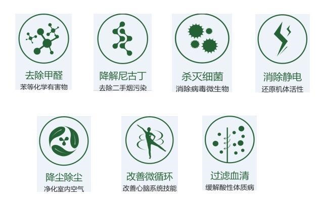 城市環(huán)境污染嚴(yán)重,負(fù)氧離子含量微乎其微,影響著人體健康,引發(fā)一系列健康問題與疾病。在空氣凈化領(lǐng)域,負(fù)離子的作用主要表現(xiàn)在負(fù)離子中的小離子可以捕捉漂浮微塵,使其凝聚而沉淀,從而使空氣凈化,當(dāng)濃度達(dá)到20000個/cm3時,空氣中的飄塵會減少98%以上,飄塵直徑越小,越易被沉淀,所以在含有高濃度負(fù)氧離子的空氣中,直徑1μm以下的微塵、細(xì)菌、病毒等幾乎為零。負(fù)氧離子可迅速分解、祛除室內(nèi)空氣中的甲醛、甲苯、VOC、二手煙塵等多項有害物質(zhì),有效沉降PM2.5。